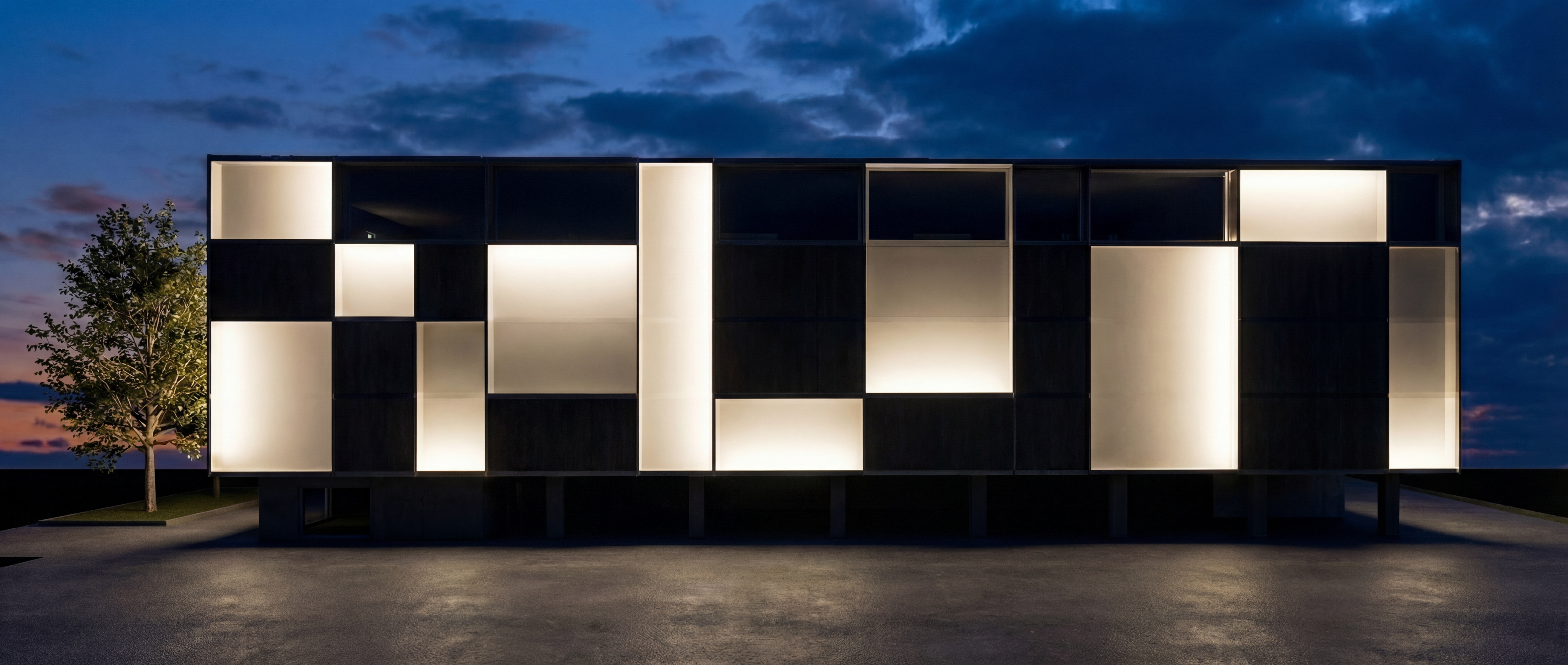 Un nuovo edificio direzionale a Caponago ridefinisce il concetto di self storage per privati, offrendo spazi funzionali e sicuri per lo stoccaggio dei beni personali. La sua volumetria, più alta rispetto al tessuto edilizio circostante, lo rende un elemento riconoscibile nel paesaggio, capace di dialogare con il contesto produttivo e infrastrutturale in cui si inserisce. Questa forte visibilità, percepibile anche dall’autostrada, ha reso centrale il tema della progettazione dell’illuminazione architettonica. I giochi di pieni e vuoti della facciata diventano così uno strumento progettuale per valorizzare l’edificio nelle ore serali, trasformandolo da semplice volume funzionale a segnale urbano, dove luce e forma contribuiscono a costruirne l’identità.