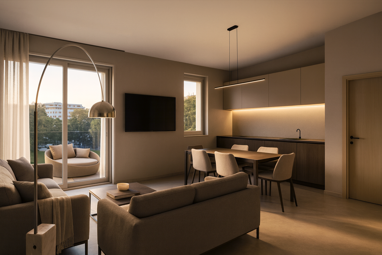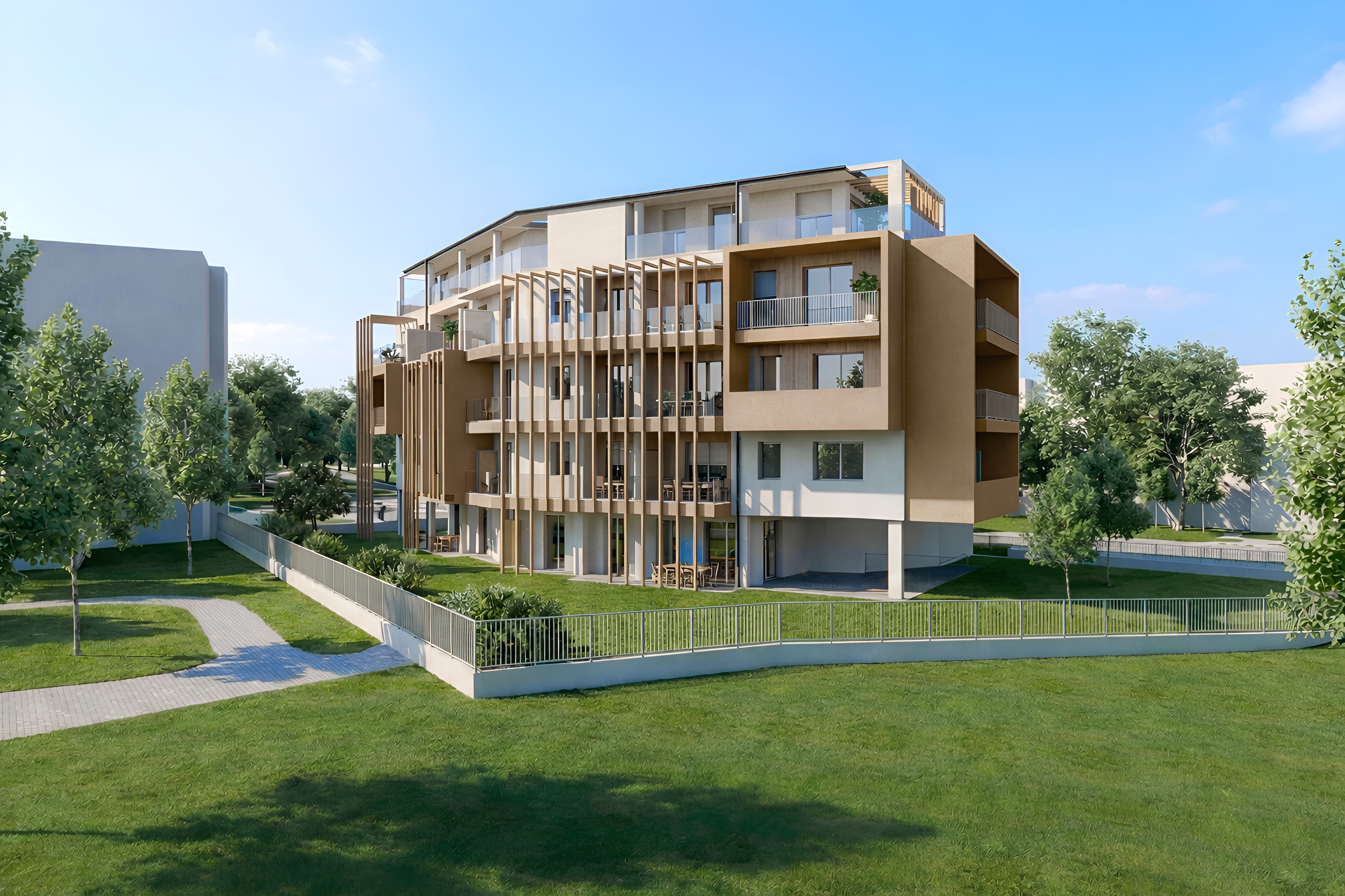 A Melzo (MI) Il progetto in Viale Olanda si inserisce in un contesto urbano consolidato ma disomogeneo, e si propone come occasione di riqualificazione del lotto libero. Il nuovo edificio adotta un linguaggio contemporaneo misurato, con l’obiettivo di restituire ordine, qualità ambientale e una maggiore coerenza al tessuto circostante. L’intervento è pensato per mettere in relazione architettura, verde e spazio urbano. La disposizione del volume, il filtro verde sul fronte strada e la cura dei prospetti e dei materiali definiscono un edificio residenziale capace di dialogare con il contesto e di migliorare la qualità complessiva dello spazio abitato.