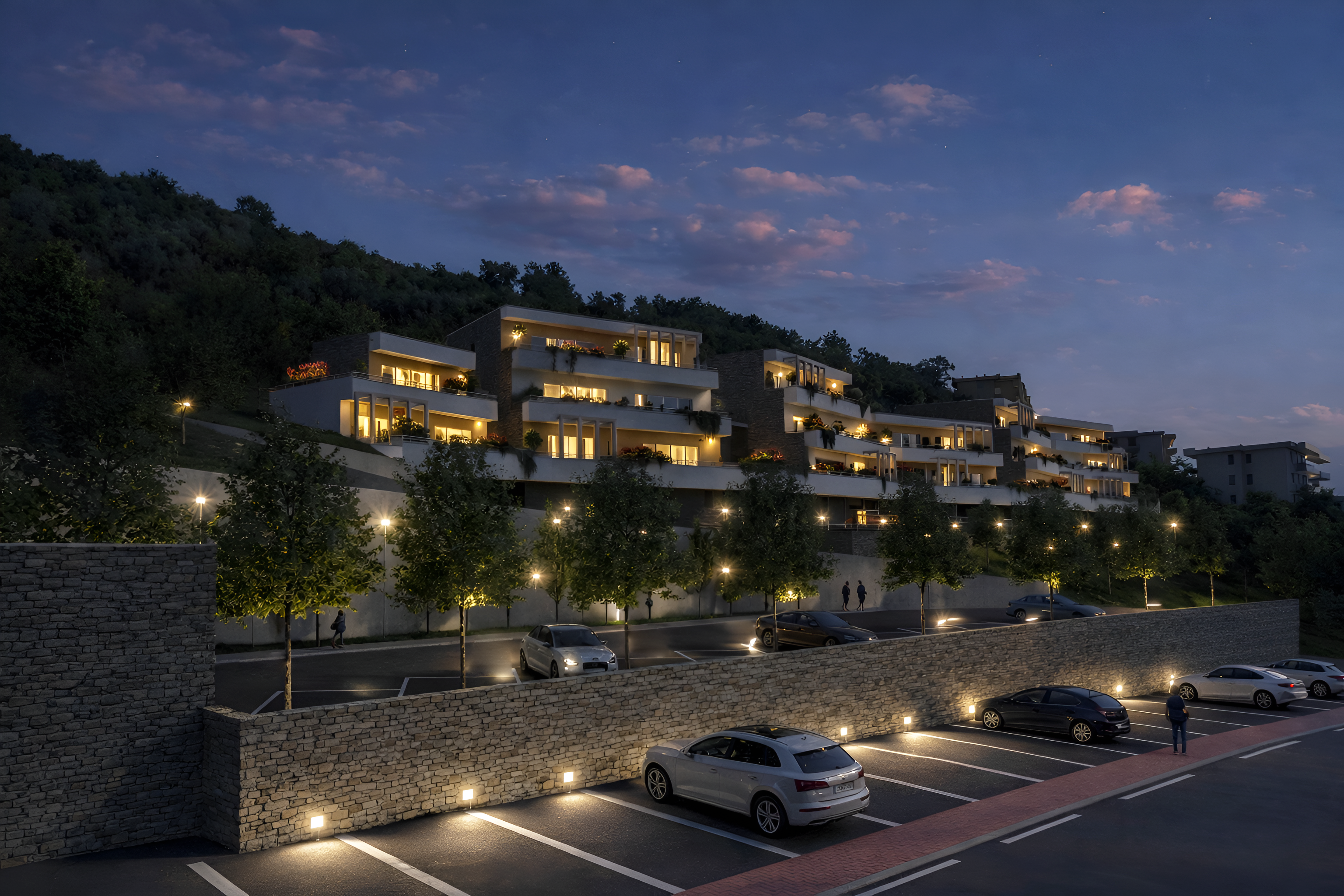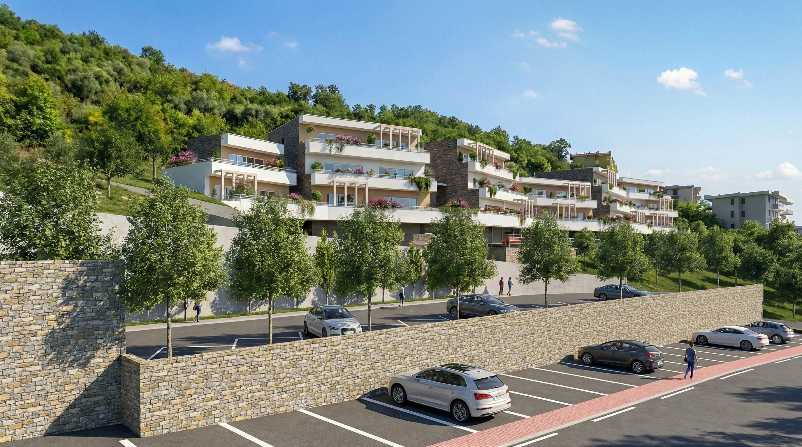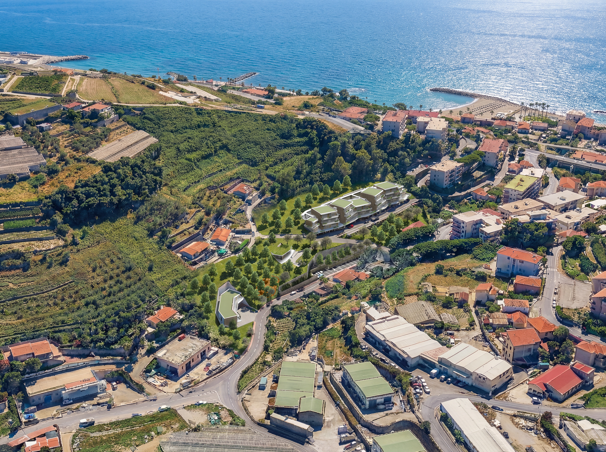 Il nuovo intervento residenziale a Santo Stefano al Mare (IM), nasce con l’obiettivo di inserirsi con equilibrio nel paesaggio collinare ligure. Il progetto sviluppa tre corpi edilizi all’interno di un’area verde già destinata al completamento residenziale, cercando un rapporto armonioso tra architettura, natura e qualità dell’abitare. Il complesso residenziale segue l’andamento del terreno e interpreta il rapporto tra architettura e morfologia con un approccio misurato, capace di ridurre l’impatto sul versante e mantenere una percezione continua del luogo. Il verde ha un ruolo centrale: alberature, filari e spazi aperti accompagnano gli edifici mitigandone la presenza e costruendo un ambiente più equilibrato.